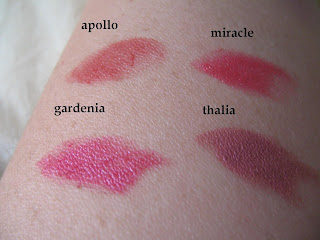 - Thalia is a non-shimmering color I got and it is a weird color. It's supposed to be a nude lipstick but I look like a corpse wearing it. Tres weird!